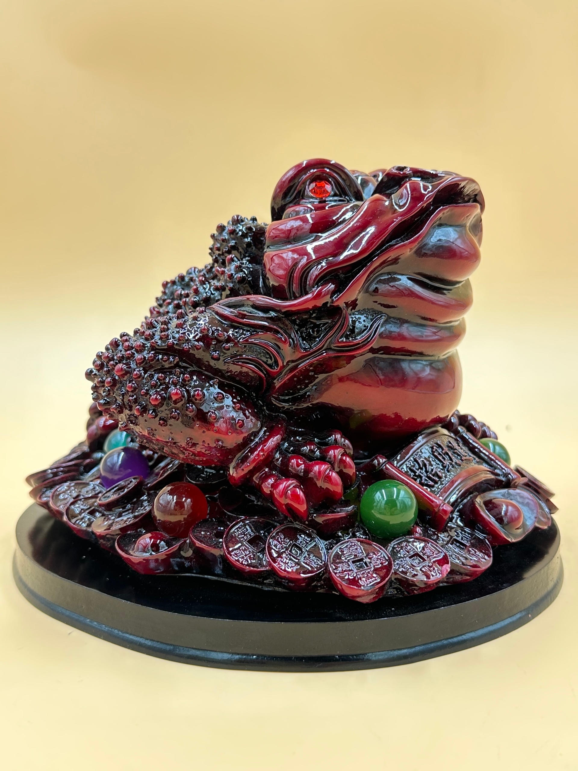 - Хороший наслідок - виготовлено з високоякісного лаку/бордової смоли, значна та вагітна жаба/жаба, що символізує популярність Талісман фен-шуй для процвітання та щастя вдома чи в компанії.