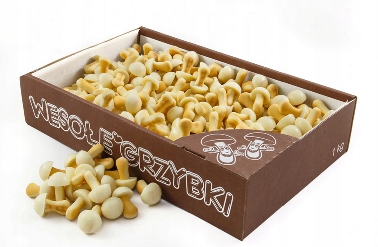 ЩАСЛИВІ ГРИБНІ ТОРТИ З БІЛОМ ШОКОЛАДОМ - 1КГ