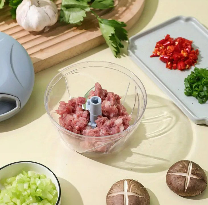 Ручний слайсер ідеально підходить для подрібнення цибулі, овочевих і фруктів. Завдяки міцним лезам з нержавіючої сталі подрібнення стає швидким і ефективним. Його можна використовувати для різноманітних кухонних завдань.
