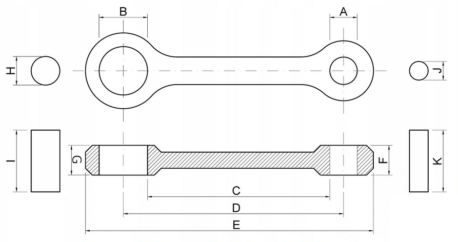 - Ширина шатуна (G): 22,9 мм