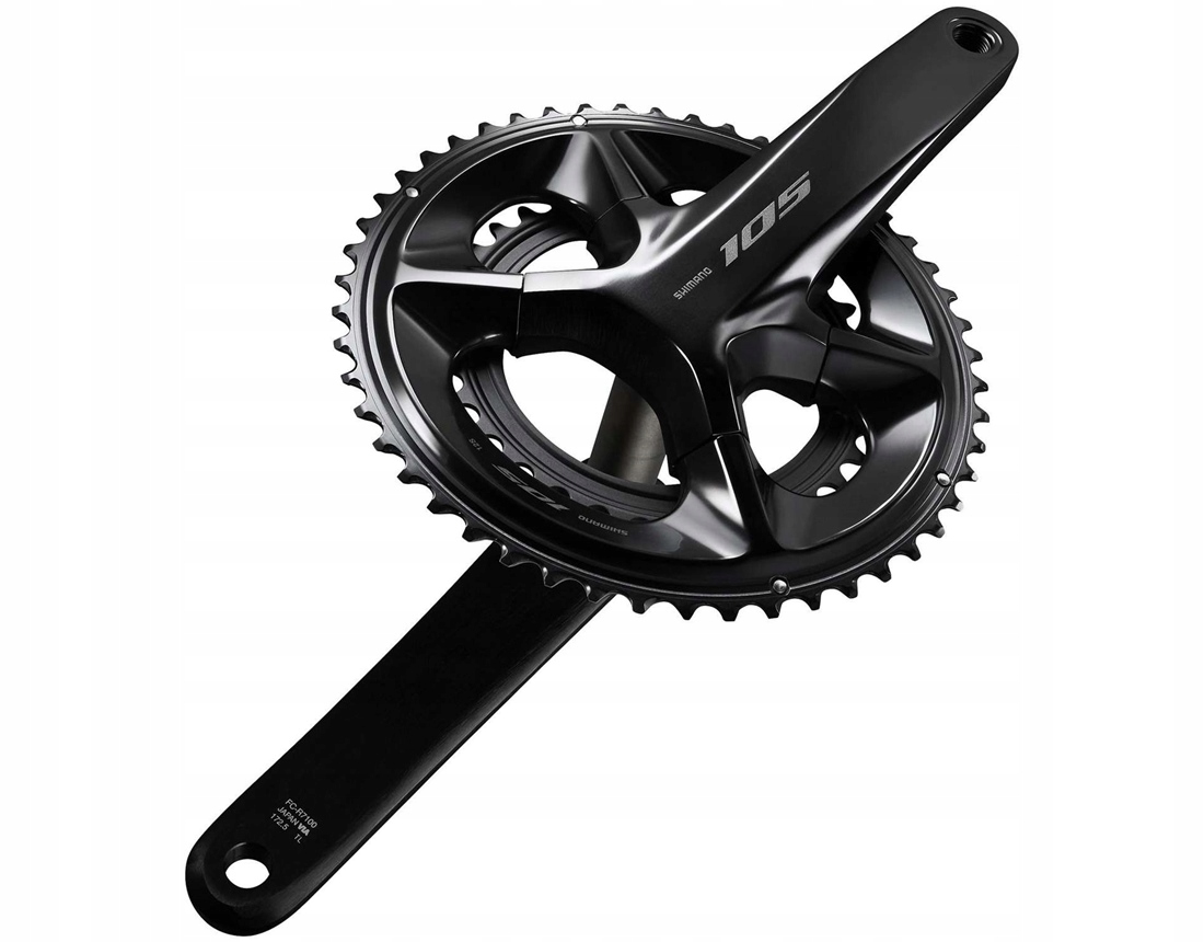 Візуально привабливі та легкі алюмінієві рукоятки з порожнистими кривошипами для підвищення жорсткості та довговічності. Нові розроблені кривошипи забезпечують чудовий баланс між продуктивністю та низькою вагою. Кора виготовлена ​​з алюмінію, анодована в чорний колір і має привабливий і розкішний вигляд. Пластикові ребра на задній частині коліс представляють унікальну структурну конструкцію SHIMANO 105, яка дозволяє значно заощадити вагу з хрусткою продуктивністю перемикання