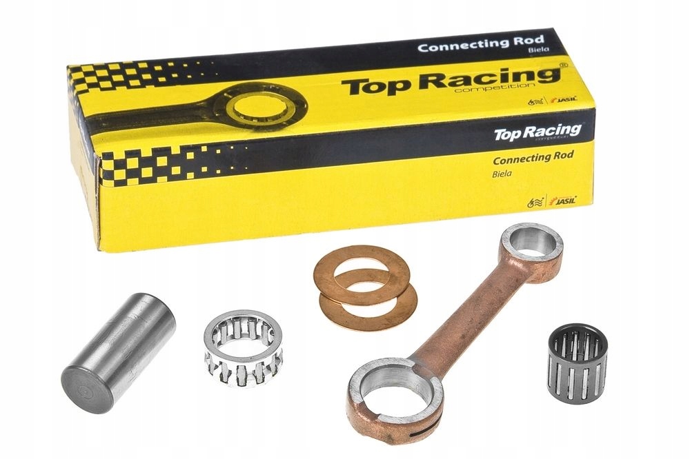 Шатун Top Racing STD. Якісна заміна оригінального шатуна від відомої португальської компанії Top Racing. Дешевше і довговічніше оригіналу. Нижній підшипник посріблений. Шатун призначений для поршневого пальця 12 мм.