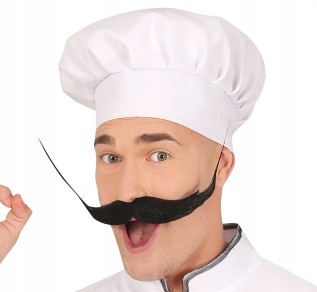 - Характерна кухарська шапка доповнює ціле, додаючи професійного характеру.