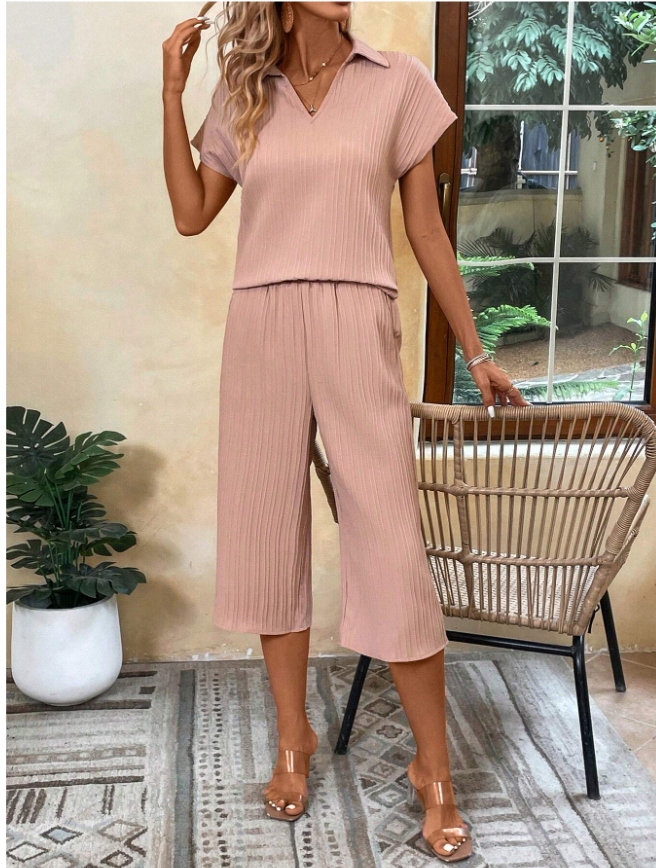 Shein Beige Set Жіночі штани та блузка R.L D163114