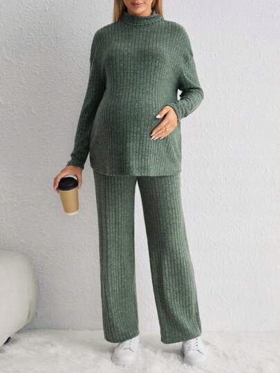 SHEIN KOMPLET CIĄŻOWY ZIELONY PRĄŻKOWANY 40/42 ŁŁA
