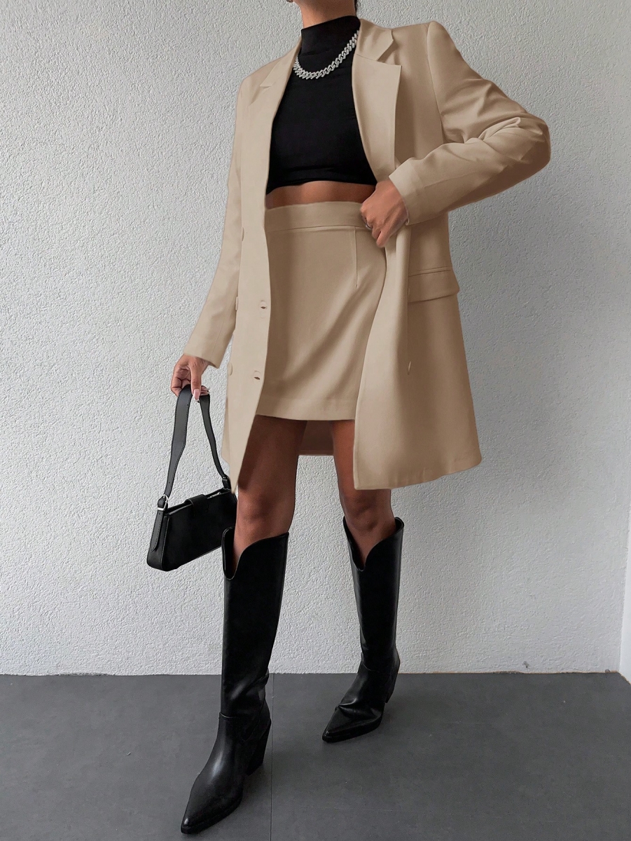 Shein набір куртки та міні -спідниці прямий коричневий M 005