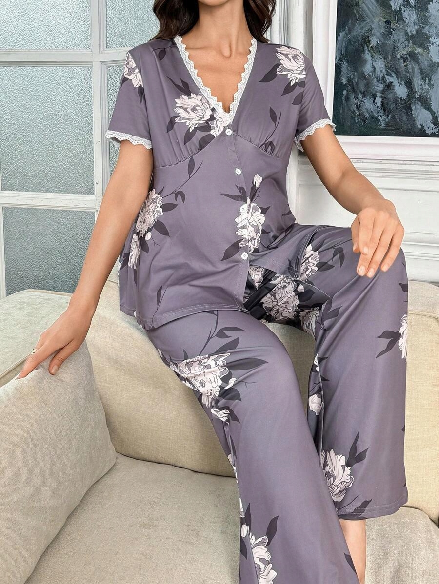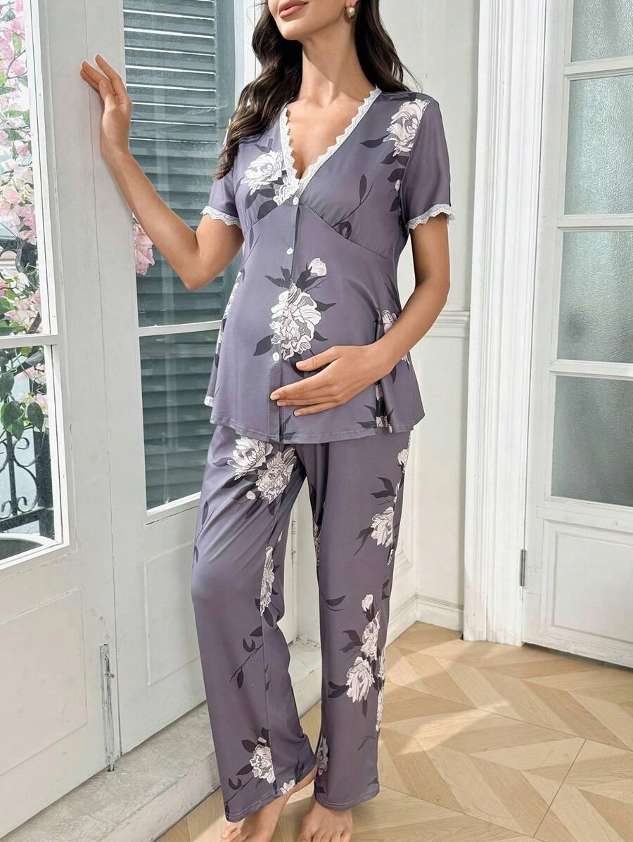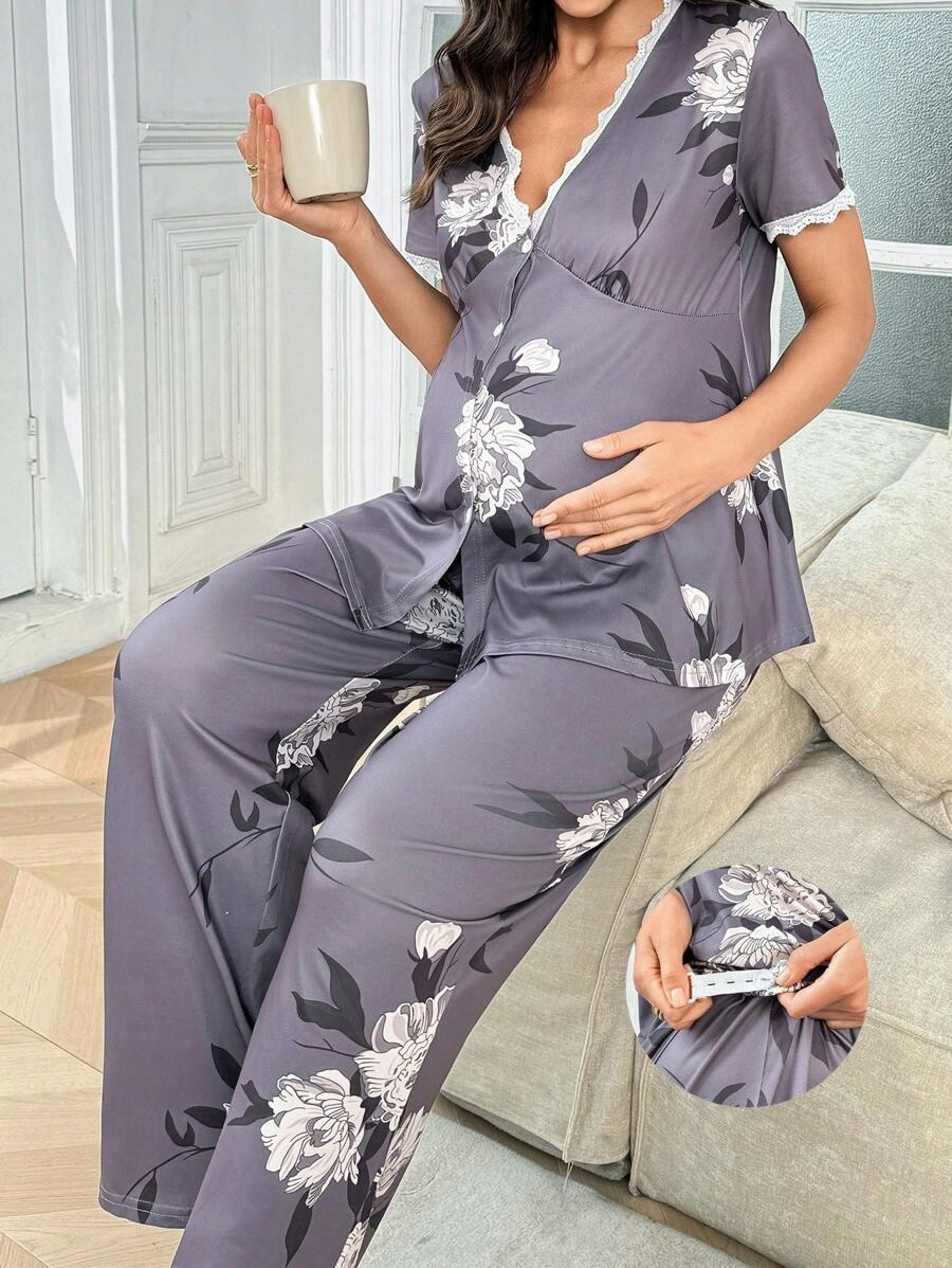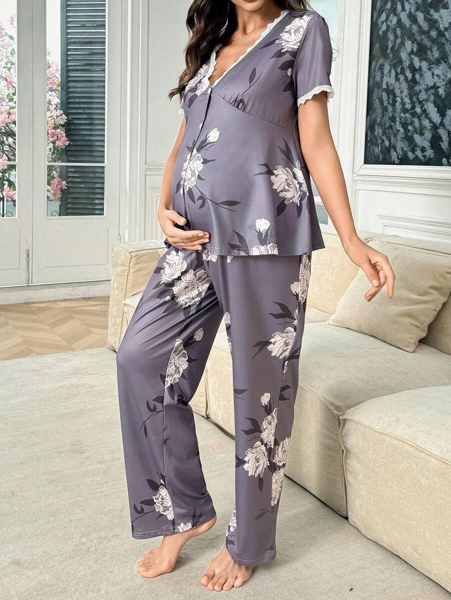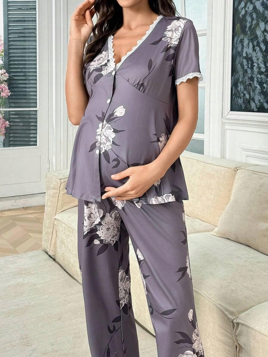 РІЗНОКОЛЬОРОВА КЛАСИЧНА ПІЖАМА ДЛЯ ВАГІТНИХ БЛУЗА ШТАНИ КВІТИ SHEIN S