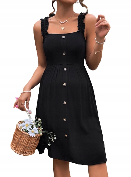SHEIN SUKIENKA CIĄŻOWA Z GUZIKAMI CZARNA 40/42 V7B