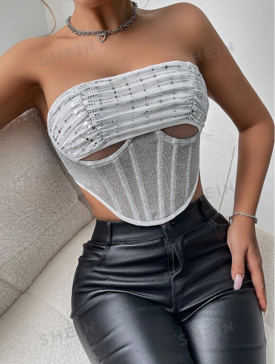 SHEIN TOP DAMSKI SREBNY BEZ RĘKAWÓW S 429
