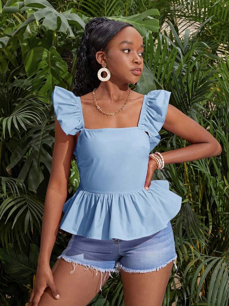 SHEIN ТОП ДИТЯЧИЙ ВІДКРИТА СПИНА СИНІЙ 150СМ 030