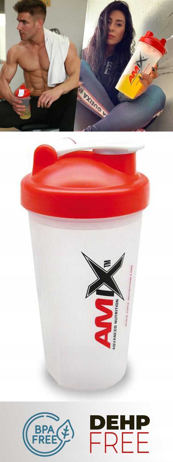 Класичний, прозорий, незмінний шейкер Amix - дозволить вам приготувати смачний коктейль на основі води або молока з улюбленим кондиціонером Amix. Виготовлений з високоякісного товстого пластику - без бісфенолу А, тобто BPA і DEHP, шкідливих для здоров'я. Без запаху, ідеально підходить для тренувальних кімнат, щоб брати їх у подорож або на роботу, на заняття фітнесом або традиційні тренування в тренажерному залі. Не протікає!