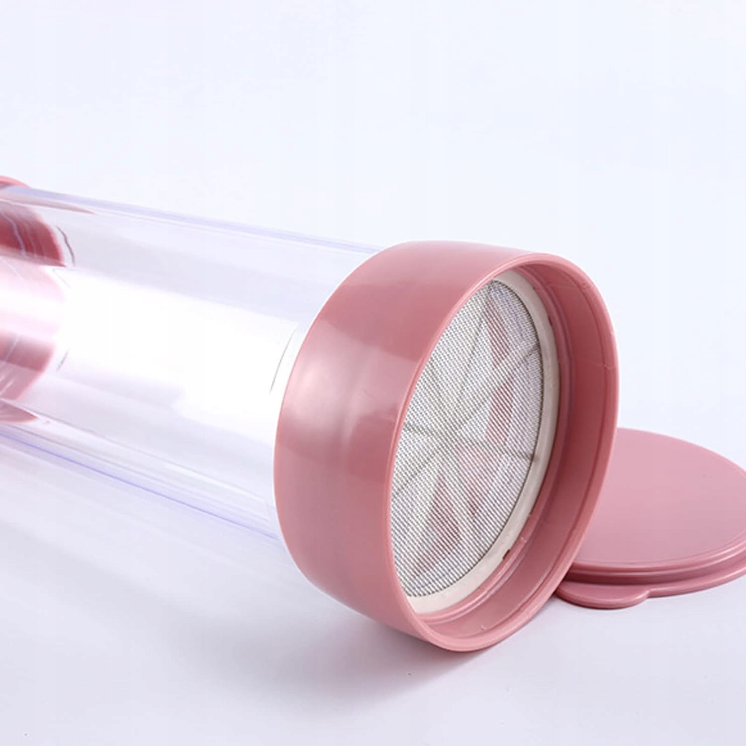 - Простий у використанні: Відкрийте верхню кришку обертового ситечка, налийте цукрову пудру, закрийте кришку, а потім відкрийте верхню кришку. Утримуйте нижню частину необов'язкового ситечка і скрутіть корпус кухоль, щоб створити порошок. 4 Борошне сито має невелике порошкове сито для більш точної фільтрації і може використовуватися для цукру, солі, цукрової пудри, борошна, шоколаду, капучино, какао -порошку та інших. Розміри: 8,5 х 19 см.