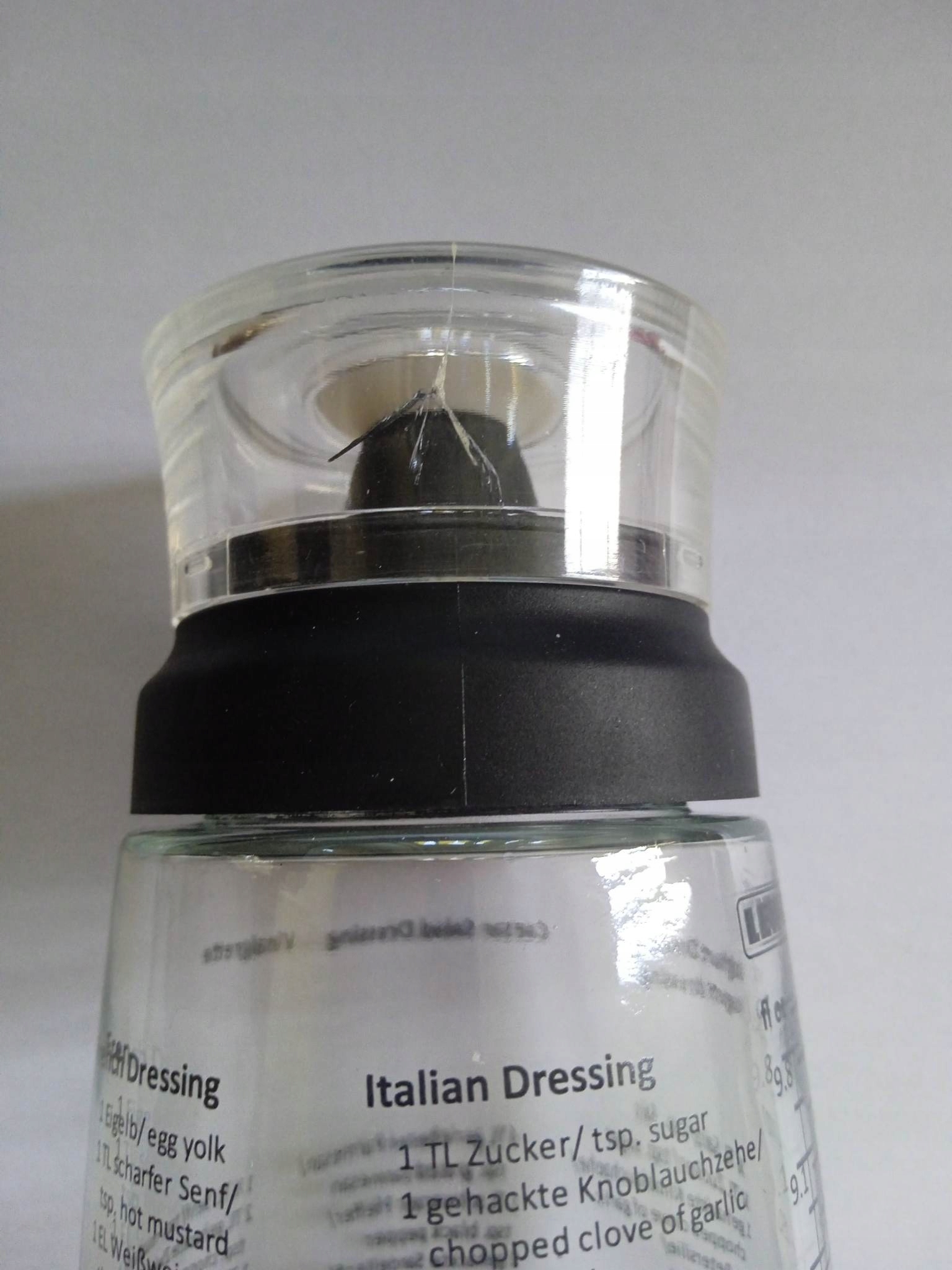 Шейкер для соусів і заправок Leifheit зробить кожну добавку до ваших страв ідеально виміреною пропорцією та чудовим смаком, який збагатить готове м'ясо та салати. Пляшка-шейкер виготовлена з високоякісного скла, а кришка - з міцного пластику. Його форма класична та елегантна. Дана модель має антикрапельний носик, завдяки якому поливати їжу соусом буде зручніше. Чітка шкала на пляшці (ml/fl.oz) полегшує дозування інгредієнтів. Ємність шейкера для соусу та заправки Leifheit становить 300 мл. У ній також зручно приготувати велику кількість соусу. Завдяки кришці дана модель підходить для зберігання готових харчових добавок. На його стінах ви знайдете 5 рецептів смачних заправок: французької, італійської, йогуртової, цезарської та вінегретної. Завдяки цьому у нас завжди будуть під рукою відповідні поради і нам не доведеться переглядати кулінарні книги. Шейкер Leifheit можна мити в посудомийній машині