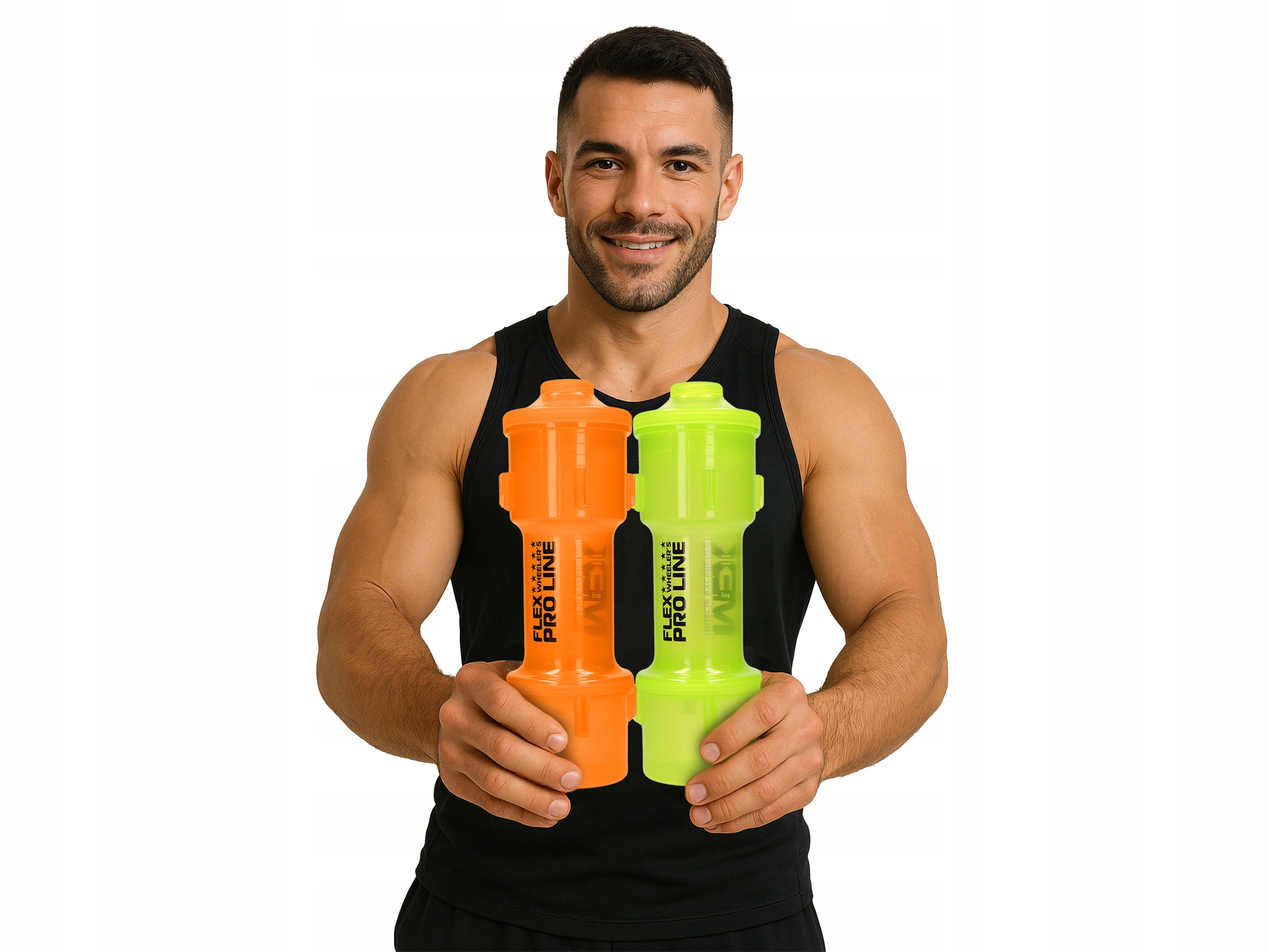 - Ви можете з’єднати верхній контейнер одного шейкера з нижнім контейнером іншого, створивши подвійний шейкер із більшою місткістю або функцією, напр. коктейль + капсули + окрема порція карбо.