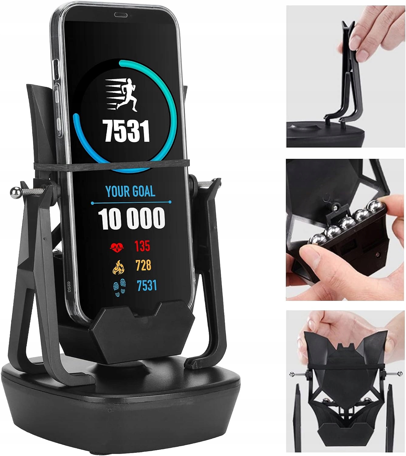 Помістіть свій телефон на крокомір, підключіть живлення або встановіть батарею, він почне розгойдуватися та обчислюватиметься автоматично. Виготовлений із якісного металу та пластику, дуже міцний, цей крокомір мобільного телефону рекомендується для тих, хто хоче збільшити. Хороша прикраса для рукоділля, яку можна розмістити на столі або використовувати як художню прикрасу. Ви можете припинити розгойдування, а потім джойстик можна використовувати як тримач для телефону. Підходить для оновлення кроків дарування подарунків тощо. практичний і зручний у використанні