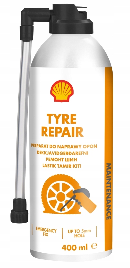 Продукт для ремонту шин Shell одночасно накачує та ущільнює пошкоджену шину, не знімаючи колеса.