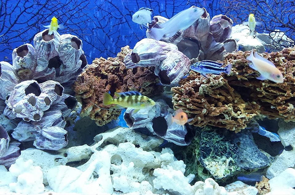 Представляємо Мушлі раковин, ідеальне доповнення до будь-якого акваріума! Ця унікальна мушля є залишком живих організмів, що мешкають у морях і океанах, і є не тільки чудовим доповненням до будь-якого акваріума, але й стабілізує pH у біотопах Танганьїки та Малаві. Він ідеально підходить для побудови кам’яної печери, яка може стати дивовижним схованком для вашої риби.