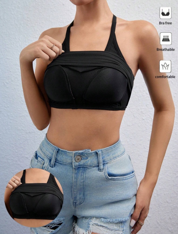 Шеїн -верхні жінки з бюстгальтерним гладким чорним розміром S 396