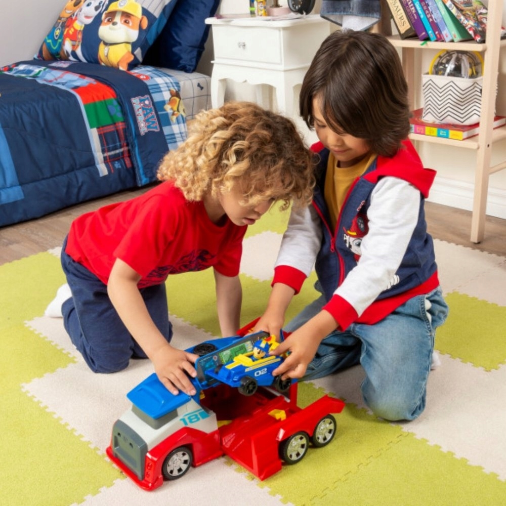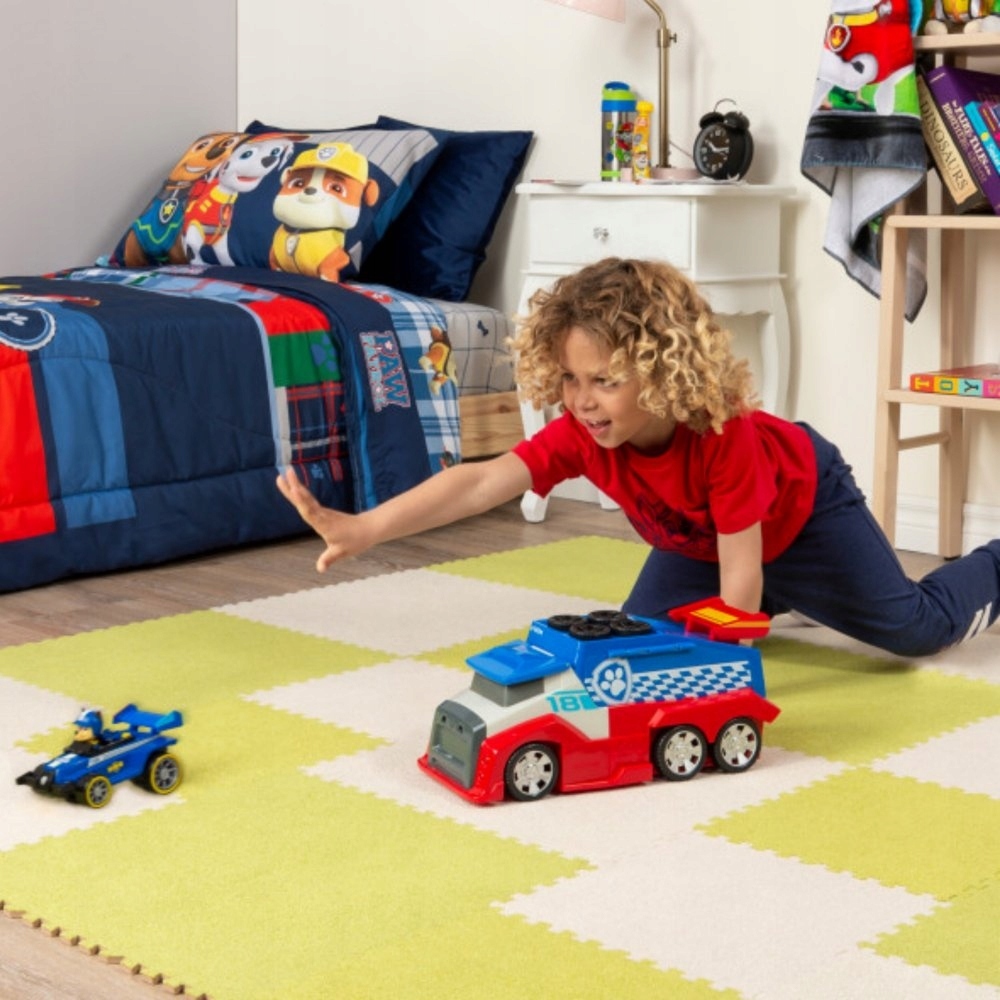 Ваш улюблений щеня Чейз готовий до перегонів і врятуйте себе на мобільному автомобілі команди Pit Stop! Ця машина оснащена всім необхідним для Чейза, щоб вирушити на допомогу! Транспортний засіб Чейза можна швидко відрегулювати, заправити паливом і миттєво підготувати до роботи. Натисніть дві верхні кнопки у формі шини, щоб увімкнути реальні звуки або змінити транспортний засіб. Коли діти натискають кнопку трансформації, відкривається панель для створення гоночного командного центру з вбудованою системою запуску транспортних засобів. Натисніть жовту кнопку, щоб завести гоночний автомобіль!