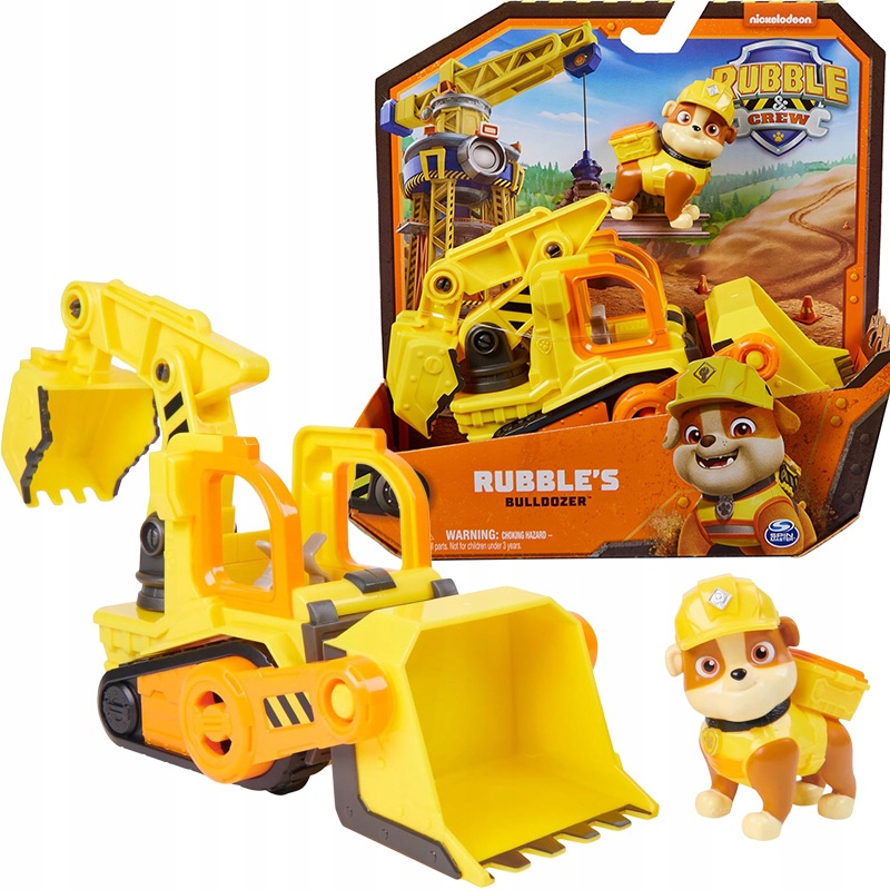 щебен, собака з собачого патруля,-це пухкий англійський бульдог з жовто-коричневим волоссям і теплими карими очима. Він завжди носить жовтий шолом та будівельний наряд, готовий працювати над своїм бульдозером, щоб допомогти у будь -якій ситуації, що вимагає важкої техніки.