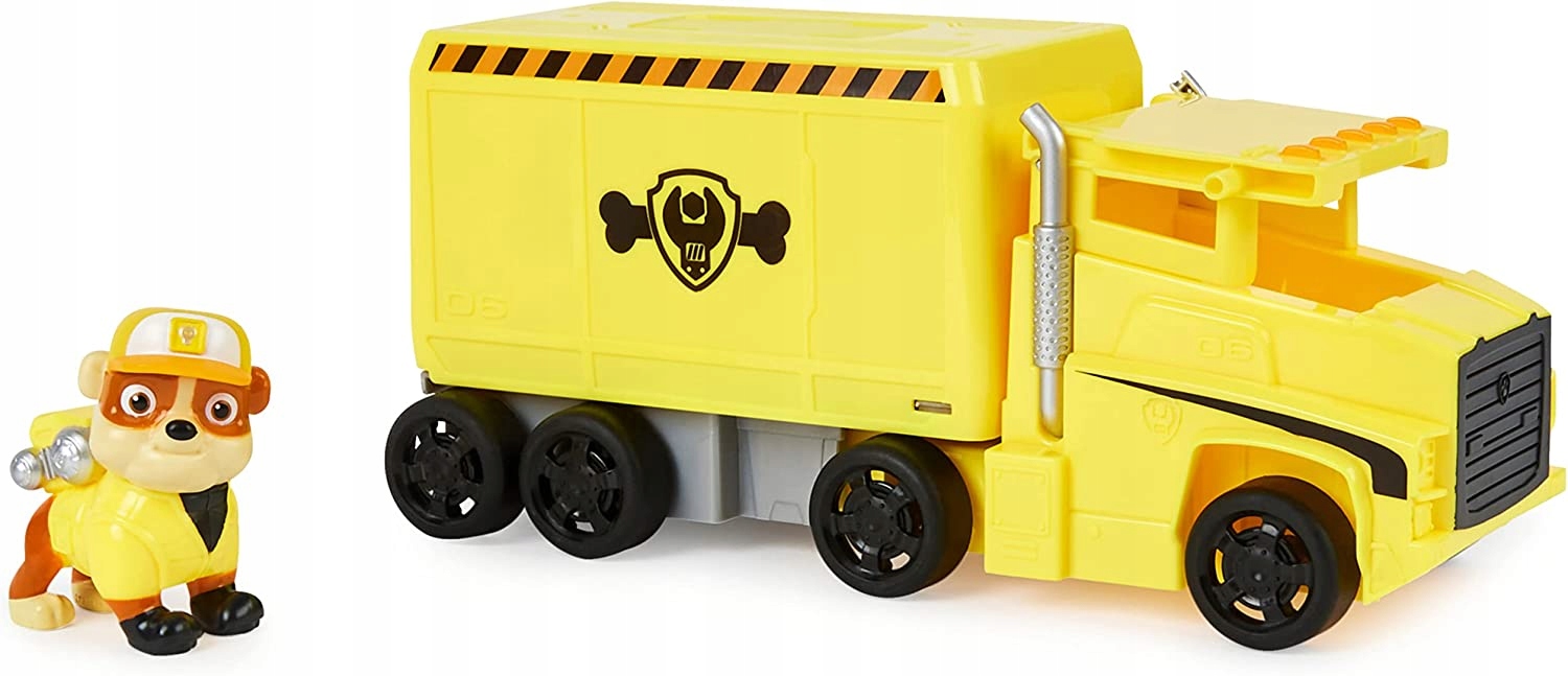 Об'єднайтеся з Рабл для порятунку на шосе на її Big Truck Pups - Rescue Truck. Велика рятувальна вантажівка Rubble має захоплюючу трансформацію автомобіля. Просто підніміть дах вантажівки, щоб Граббл сів на водійське сидіння, а потім підніміть дах причепа, щоб спостерігати за його трансформацією.