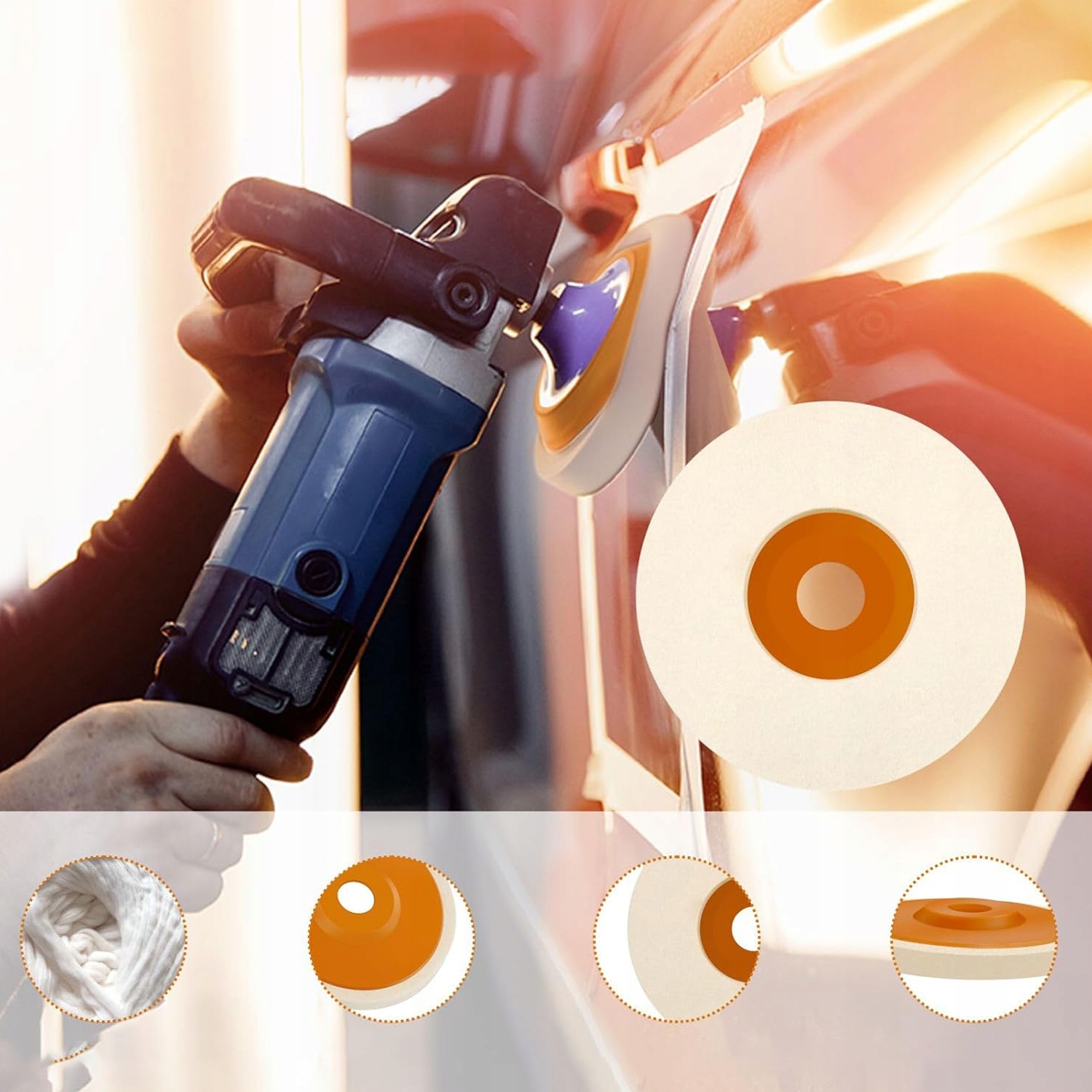 Диск полірувальна подушечка виготовлена з натуральної вовни, яка може ефективно полірувати, а полірувальна подушечка виготовлена зі спресованого вовняного повсті, який є екологічно чистим, міцним, зносостійким і довговічним.
