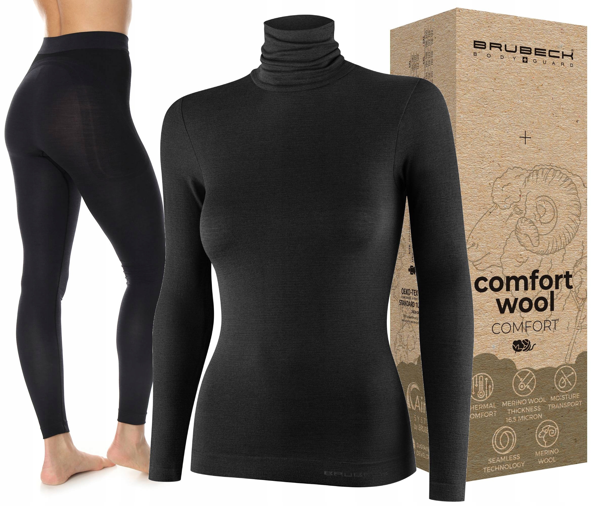 КОМПЛЕКТ ЖІНОЧОЇ ТЕРМОБІЛИЗНИ З МЕРИНОСУ, ТОНКИЙ ГОЛЬФ + ЛЕГІНСИ - BRUBECK COMFORT MERINO WOOL WOOL Термобілизна | чорний