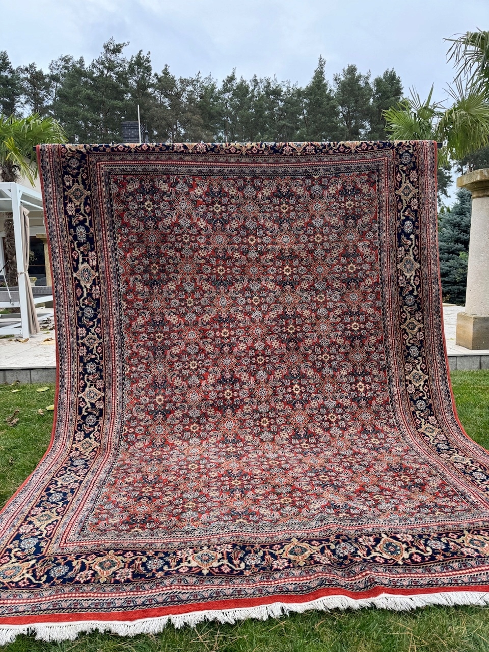 ТЕМА: Перський килим ручної роботи. Оригінальний східний індо-біджар. Є бирка під килим + паперовий сертифікат під замовлення. У галереї до продажу він коштував майже 2500 євро, тобто близько 12 000 злотих. Він унікальний своїм малюнком і кольором. Це килим дуже високого класу. Ці килими є одними з найкрасивіших килимів у світі.