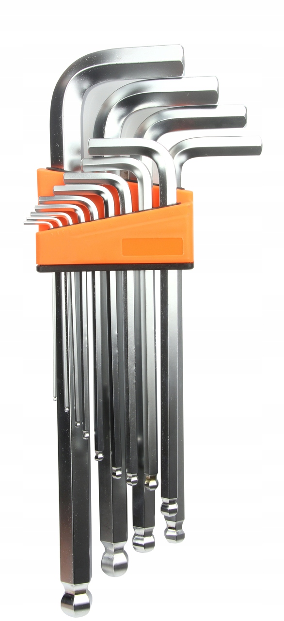 Набір шестигранних шестигранних ключів з високоякісної хромованадієвої сталі. Модель зі спеціальним овальним торцем, що дозволяє використовувати ключі під кутом нахилу до 30°.