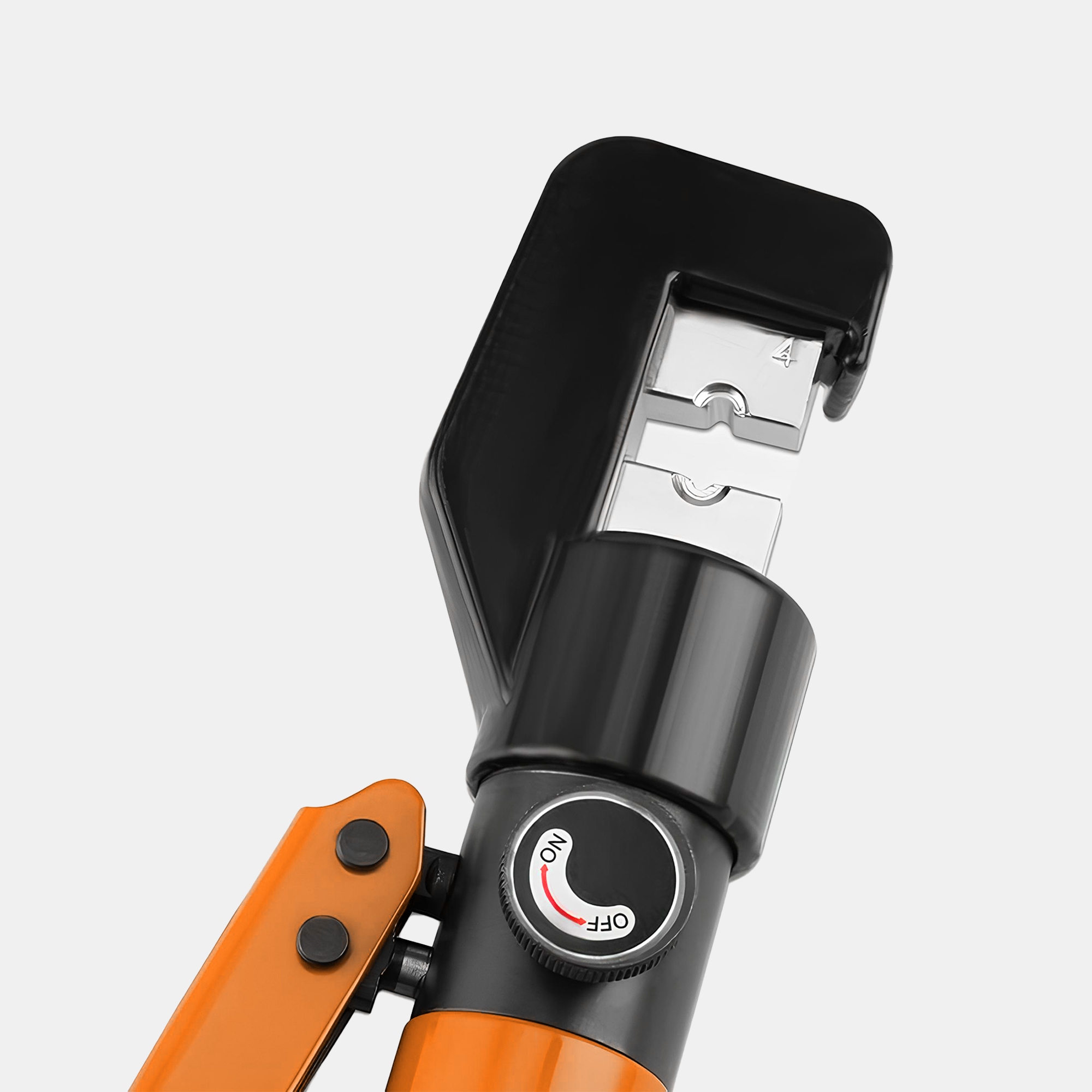Однополюсна гідравліка, яка використовується в обтискачі, гарантує рівномірний тиск на з’єднувач, що забезпечує точне та довговічне електричне з’єднання. Цей механізм працює за рахунок натискання гідравлічного масла в одному напрямку, що полегшує контроль процесу опресування. Завдяки цьому оператор може робити повторювані та міцні обтиски без ризику пошкодити кабель або роз’єм. Міцна конструкція та ергономічна ручка роблять інструмент зручним у використанні та придатним як для майстерень, так і для польових робіт.