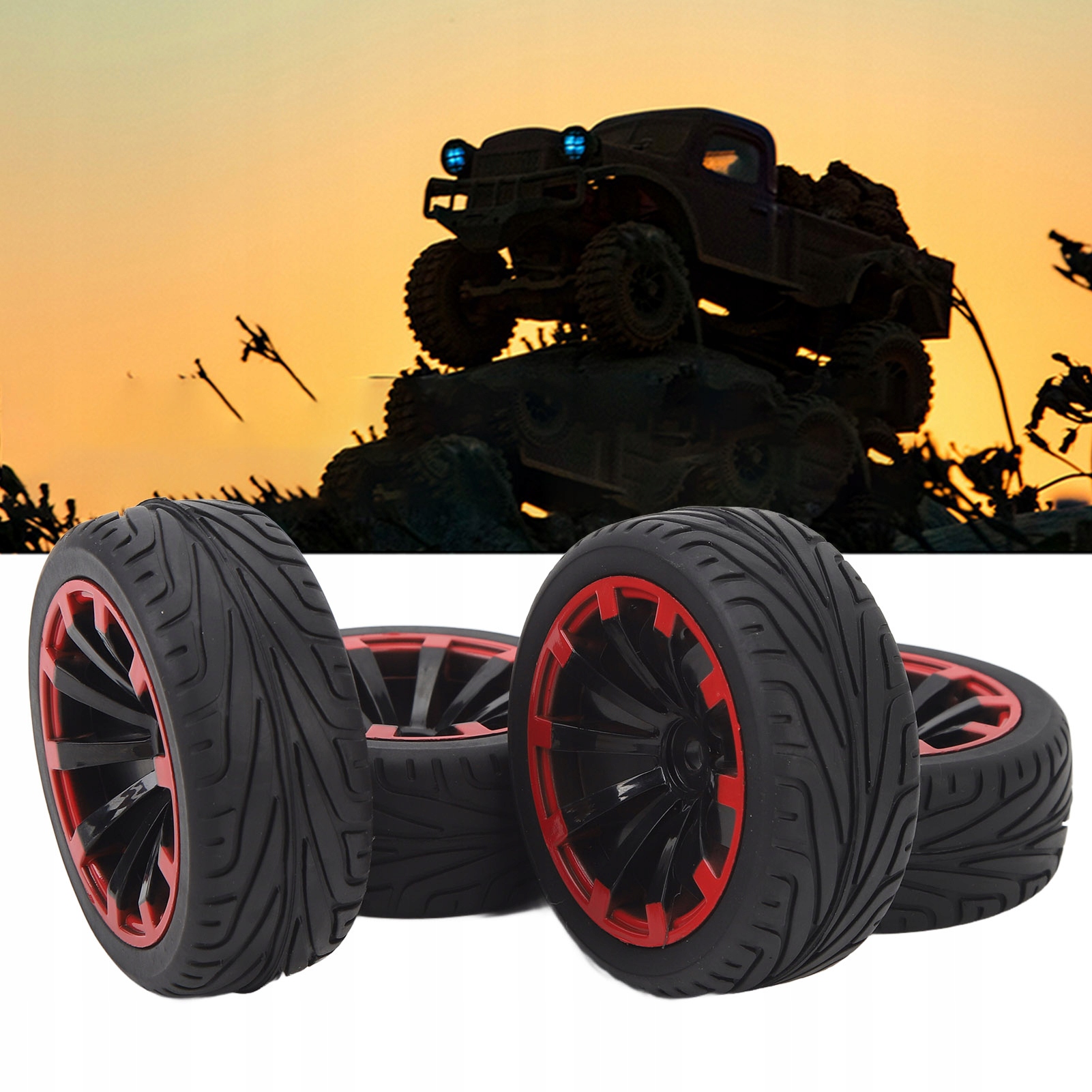 4 шт. 12-міліметрових шестикутних коліс RC Шини в масштабі 1/10 Позашляхові шини F-подібний протектор 10 отворів Червоне кільце колеса Шини втулки колеса