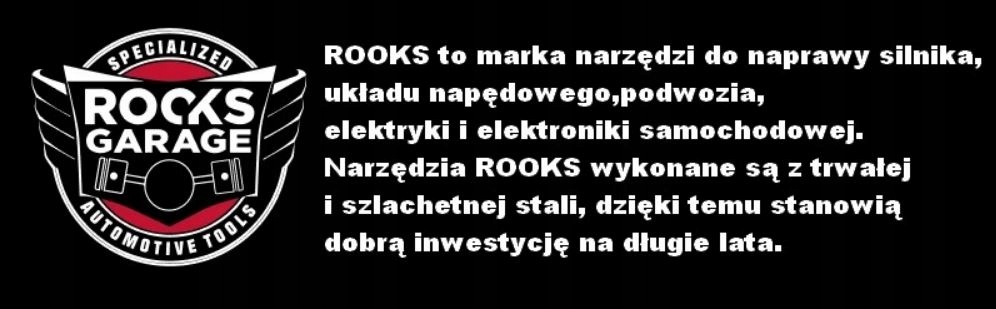 ROOKS це інструменти преміум-класу. Бренд характеризується спеціалізованим інструментом з кращих легованих сталей, який гарантує роботу в найскладніших промислових і експлуатаційних умовах. Інструменти ROOKS - це пропозиція для механіків і спеціалістів у галузі автомобільної промисловості, загальної механіки та промислових машин і пристроїв. ROOKS - це інвестиція, яка окупається протягом тривалого часу. Автомобільний інструмент марки ROOKS міцний і благородний, що вже підтверджено багатьма відмінними автосервісами. Інноваційні продукти та технології ремонту автомобілів є візитною карткою бренду ROOKS.