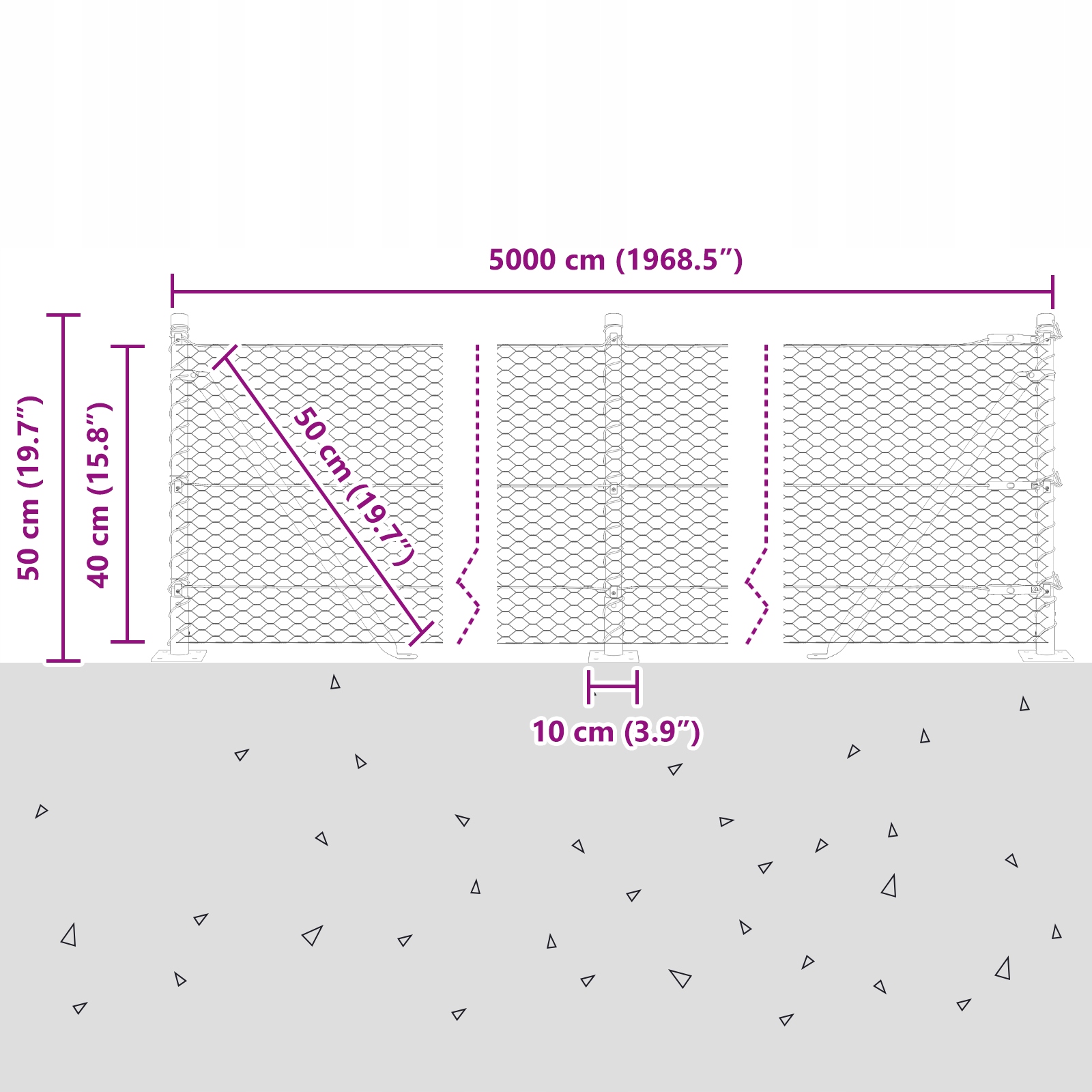 Огорожа шестигранна 0,4х50 м оцинкована сталь, Стовпи для огорожі з підставками 13 шт. Ø32мм 50см оцинкована сталь