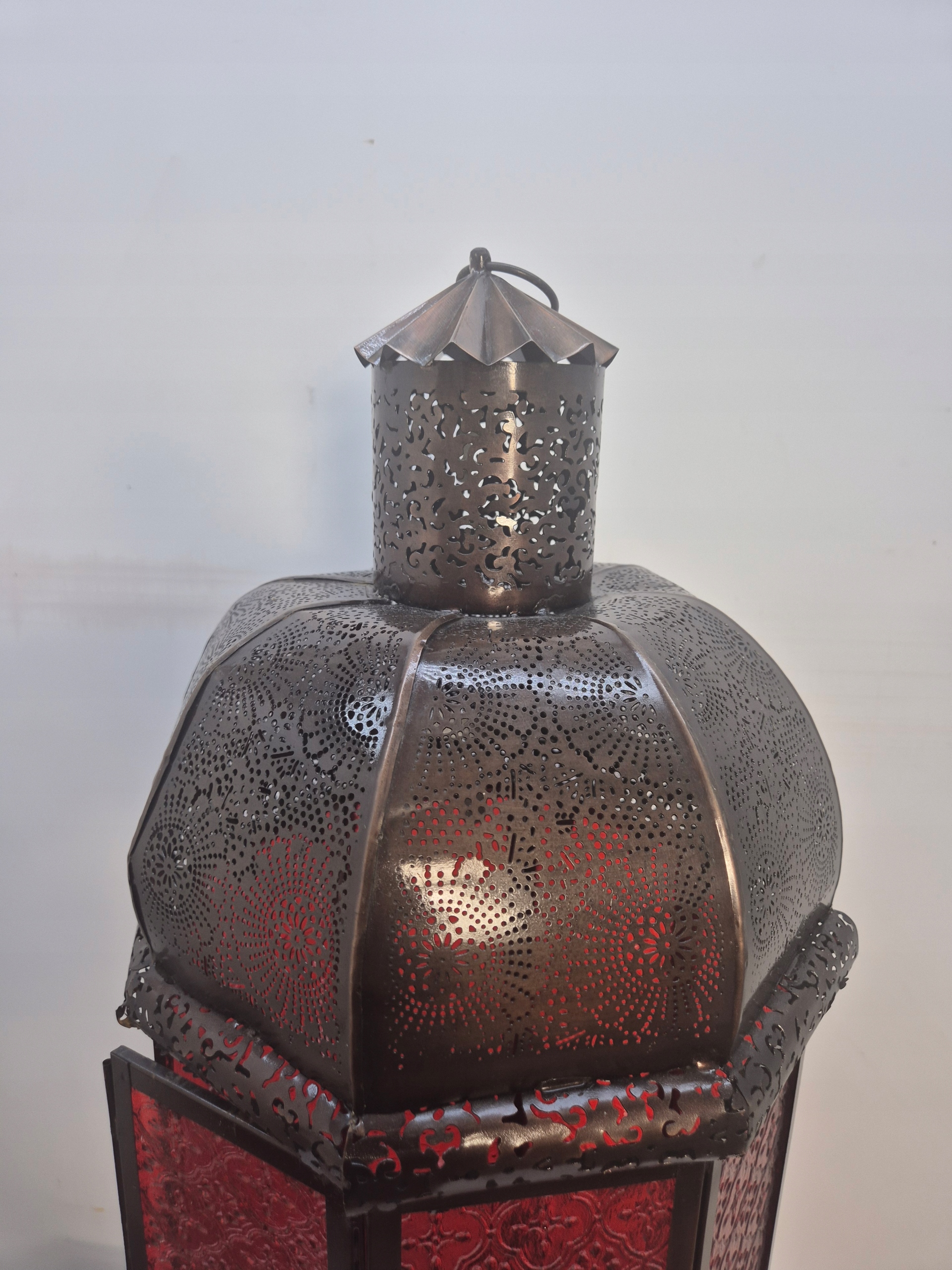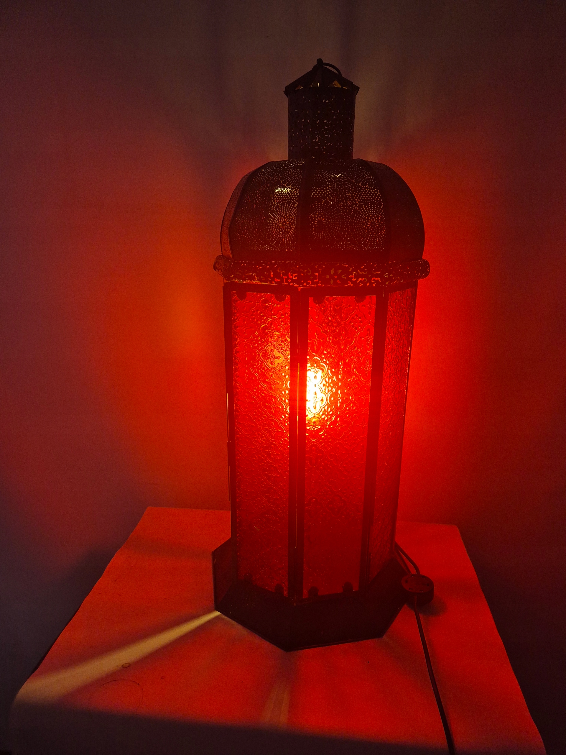 FADILA — це класичний марокканський ліхтар, який вражає своєю витонченою обробкою та прекрасним світлом. Виготовлена з патинованого заліза (листового) і різнокольорового рельєфного скла. Підходить як для електричного освітлення, так і для класичних свічок. Його також можна використовувати як торшер. Марокканські світильники незамінні в облаштуванні клубів і ресторанів. Чудовий як незвичайний подарунок. Виріб виготовлено повністю вручну, відповідає основним характеристикам унікального виробу – виробу художніх промислів.