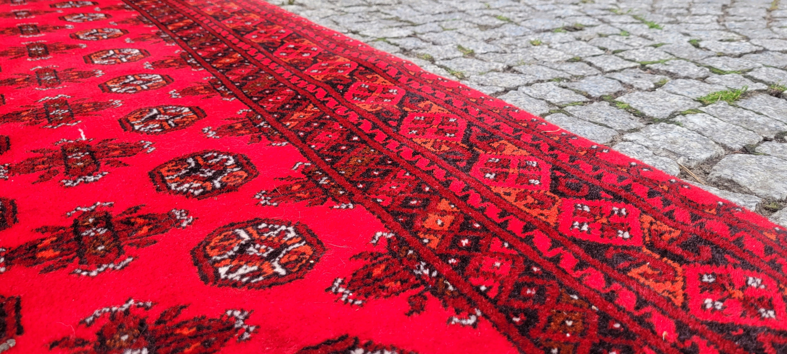 Це килим дуже високої якості. Ці килими виткані вручну в селах і майстернях Афганістану. Традиційно використовується мотив стопи слона. Вони виткані особливим чином і надзвичайно красиві, червоного кольору з темно-сірими деталями. Дуже міцні, вони представляють найвищу афганську якість. Гарні килими, варті своєї ціни. Універсальні малюнки роблять цей килим підходящим для багатьох інтер'єрів.
