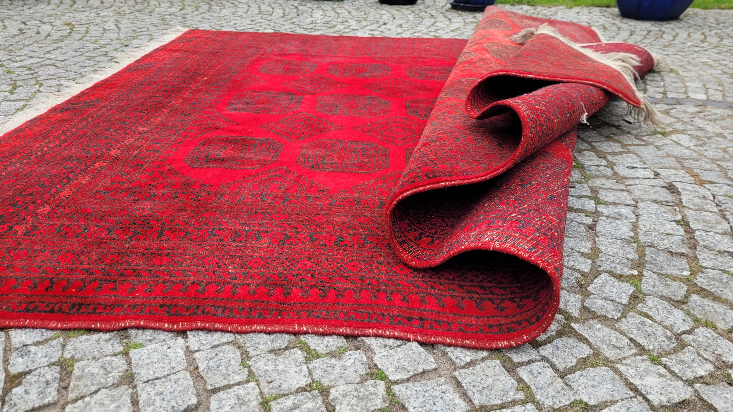 Оригінальний афганський килим. Виткана вручну з вовни найвищої якості. Характеризується компактним, блискучим, приємним на дотик флісом і красивими патинованими кольорами та візерунками. Він у дуже хорошому стані, видно на фотографіях.