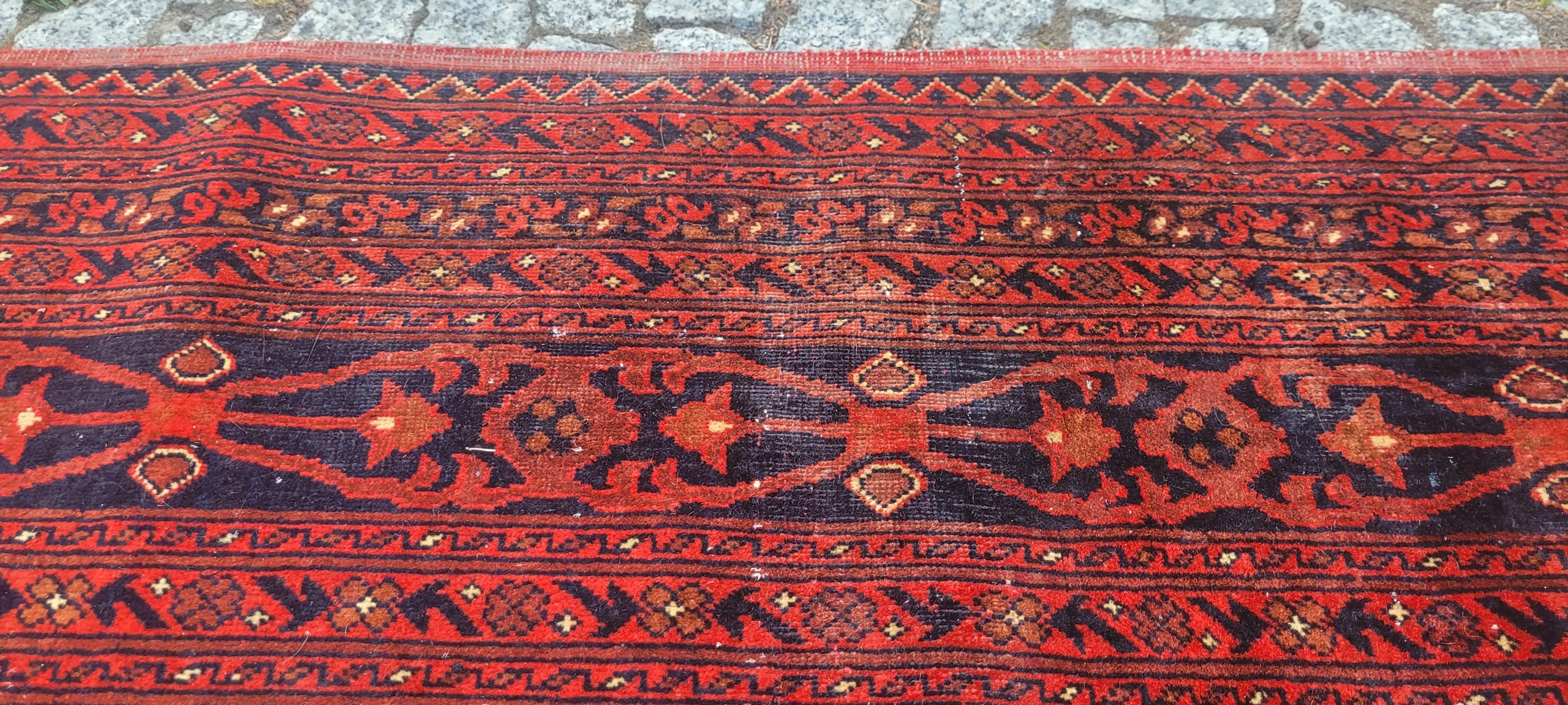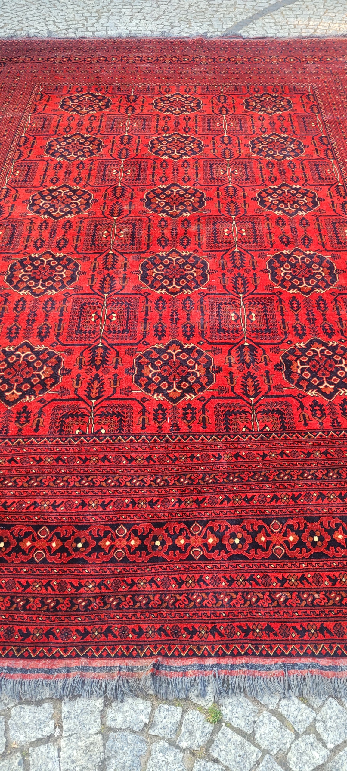 Оригінальний афганський килим. Виткана вручну з вовни найвищої якості. Характеризується компактним, блискучим, приємним на дотик флісом і красивими кольорами та візерунками. В хорошому стані, видно на фото. Має місця з низьким флісом.