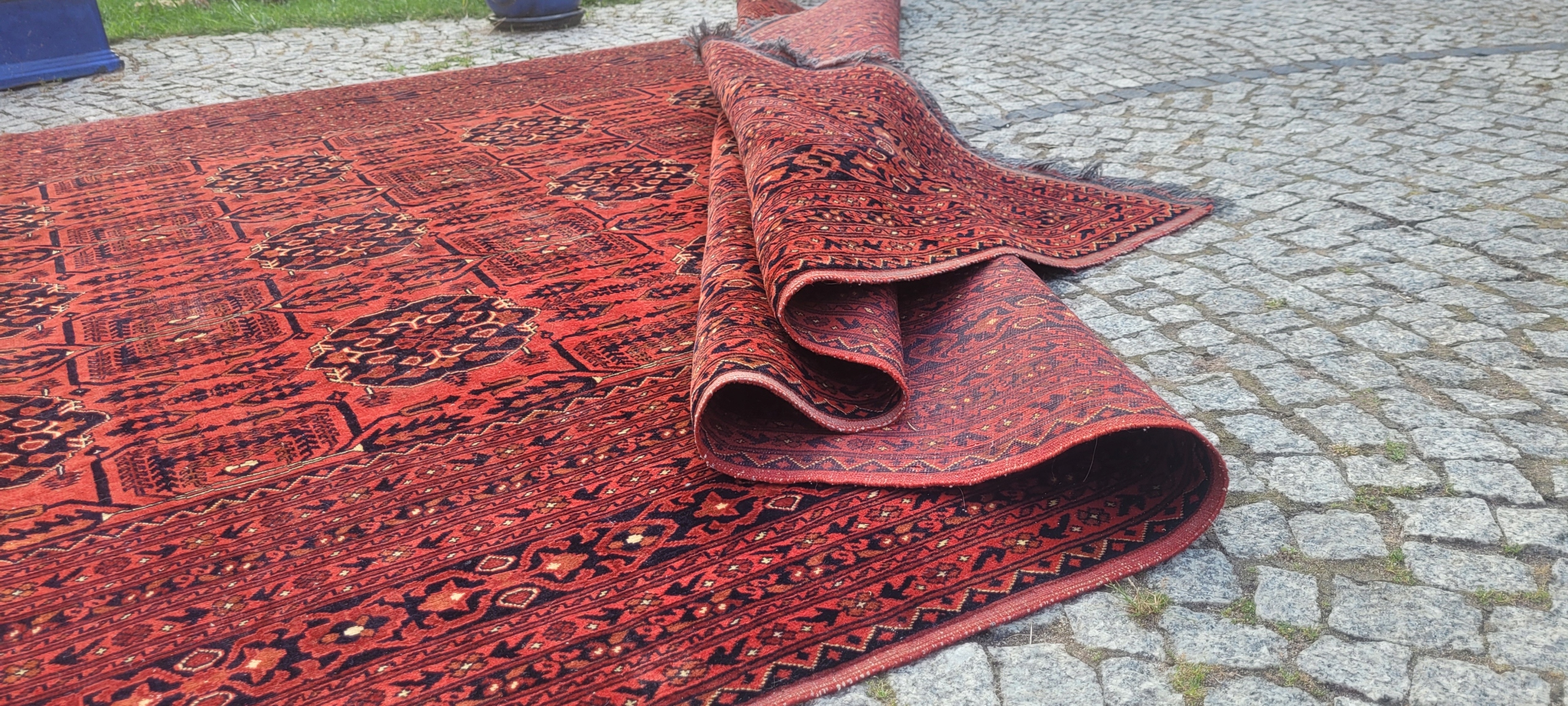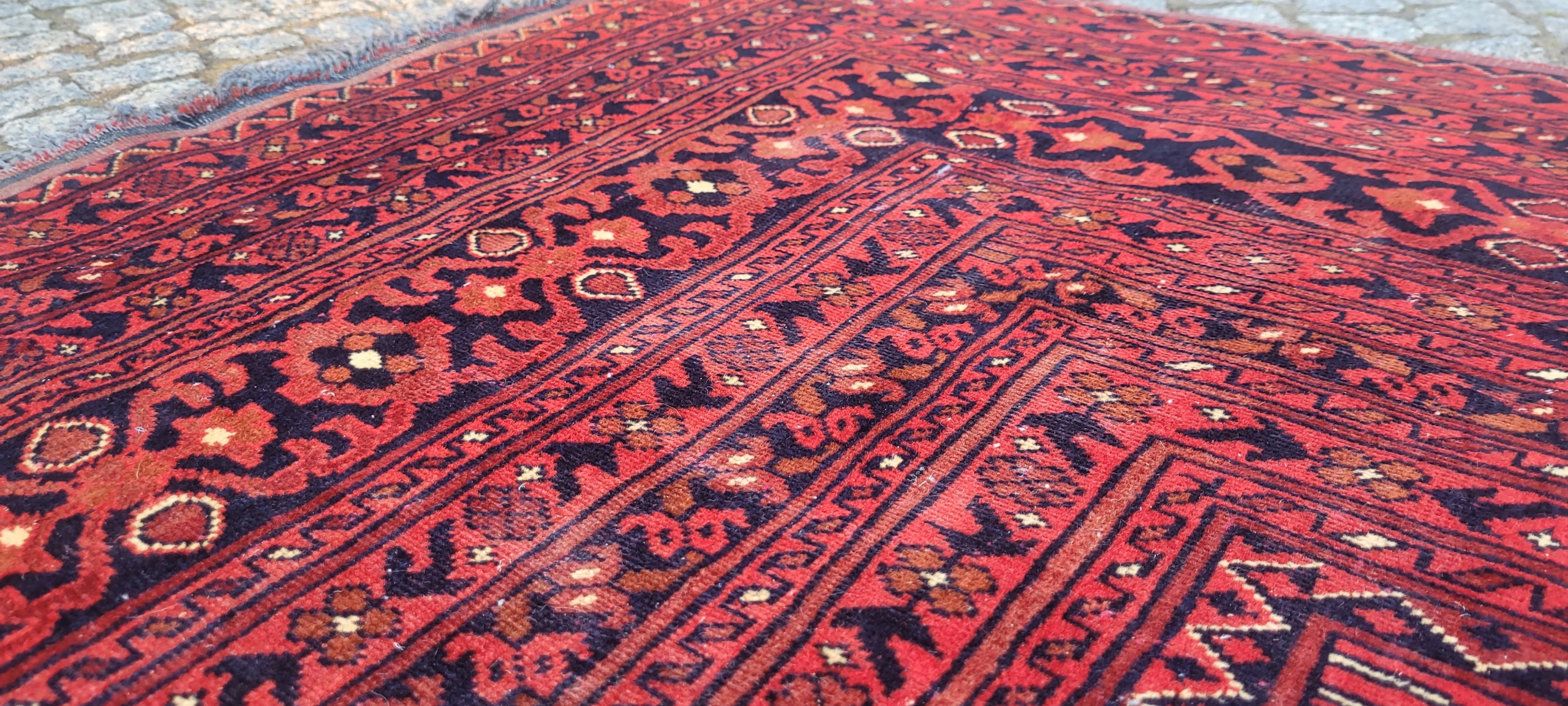 Це дуже висока якість килим. Ці килими виткані вручну в селах і майстернях Афганістану. Традиційно використовується мотив стопи слона. Вони виткані особливим чином і надзвичайно красиві, червоного кольору з темно-сірими деталями. Дуже міцні, вони представляють найвищу афганську якість. Гарні килими, варті своєї ціни. Універсальні малюнки роблять цей килим підходящим для багатьох інтер'єрів.
