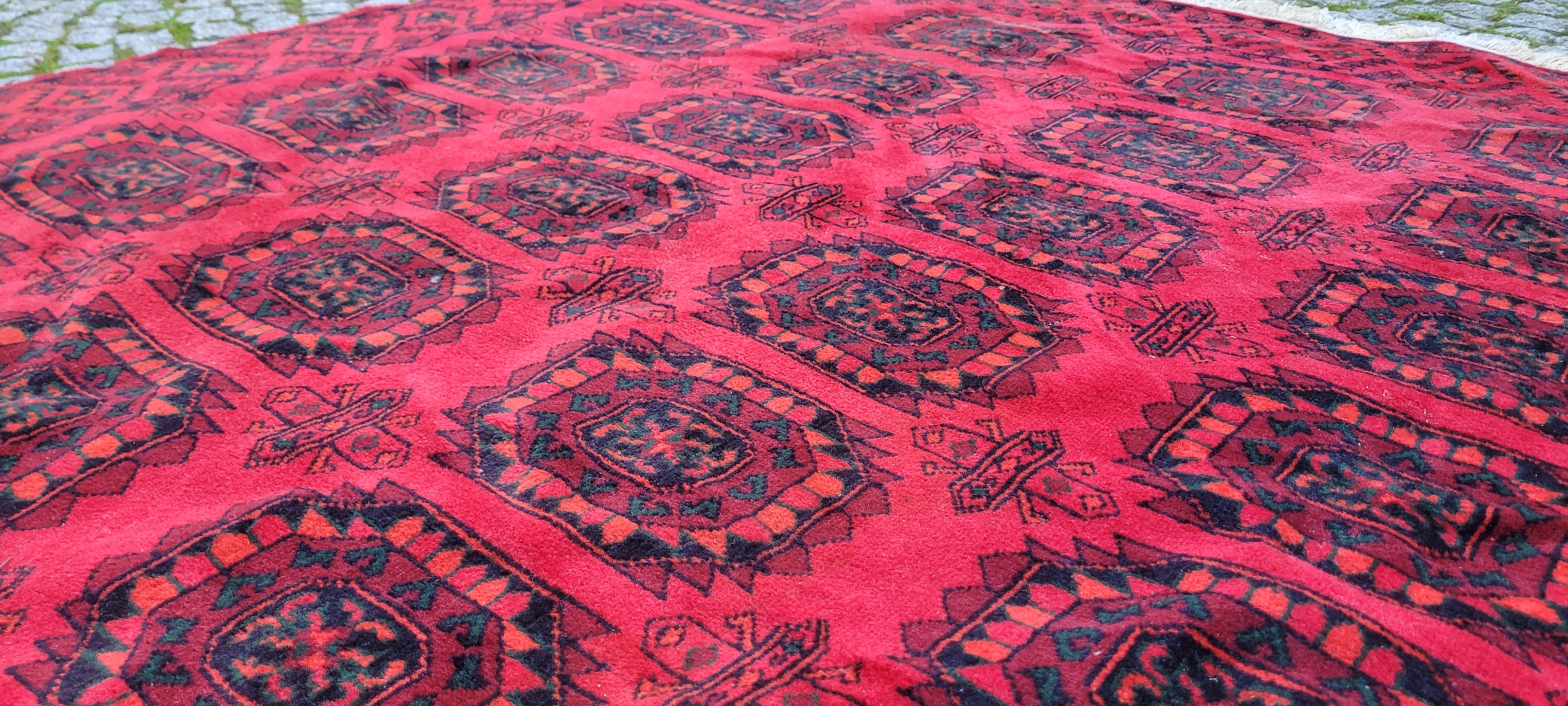 Килим для вітальні в афганському стилі. Виготовлена машинним способом з вовни найвищої якості. Характеризується компактним, блискучим, приємним на дотик флісом і красивими кольорами та візерунками. Він у дуже хорошому стані, видно на фотографіях.