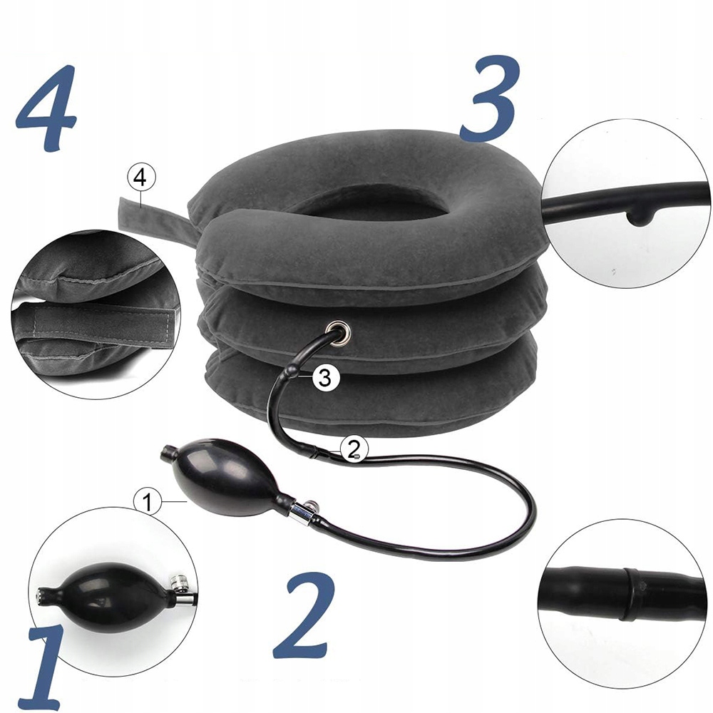 Надувний пристрій для тяги шиї має три шари, регулює натягувач шиї в необхідному фіксованому положенні, підтримує належну тягу шиї/шиї та виконує повітря і терапія шиї. Ми рекомендуємо використовувати шийний бандаж протягом 15-20 хвилин двічі на день протягом першого та другого тижня. З третього тижня ортез можна використовувати повторно, залежно від потреб.