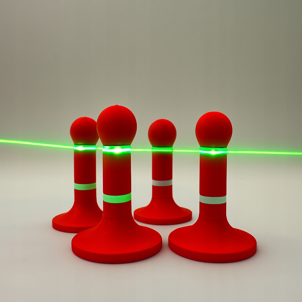 Ми представляємо набір із 4 стійких вертикалей, розроблених спеціально для роботи з сучасними зеленими лазерними рівнями. Ключ до успіху полягає в розумному дизайні: білі лінії вирівнювання на висоті 12 мм, 20 мм і 38 мм є стандартними орієнтирами для теслярів. Коли зелений лазерний промінь падає на білий елемент пішака, світло добре видно зелений - ви можете бути впевнені, що все горизонтально. Якщо промінь потрапляє на червону частину пішака, ви отримуєте чітку, висококонтрастну червону мітку, яка негайно сигналізує про необхідність виправлення. Вирівнювання шаф і стільниць стає інтуїтивно зрозумілим і миттєвим.