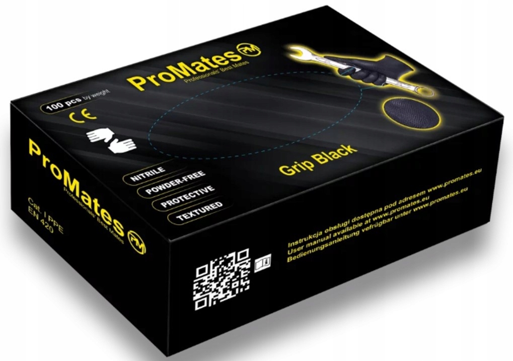 Нітрилові рукавички ProMates ідеально підходять для всіх видів діяльності, що вимагають використання високоякісних рукавичок, незалежно від робочого середовища. Більш товсті стінки і алмазна структура гарантують відмінне зчеплення і захист при роботі в складних умовах. Висока міцність також зменшує знос рукавичок. Вони гарантують чисті руки та відмінне зчеплення в будь-якій ситуації. Рукавички дозволені для контакту з їжею.