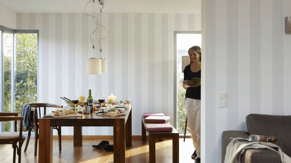 ЩІЛЬНІ ШПАЛЕРИ СІРО БІЛА СМУЖКА ЗНІМНІ ШПАЛЕРИ