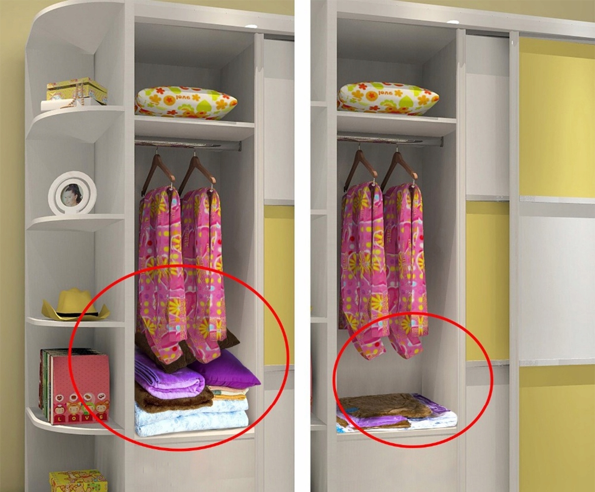 постільна білизна, ковдри, зимові куртки та м’які тварини можуть чекати свого часу надійно заховані в герметичному вакуумному пакеті.