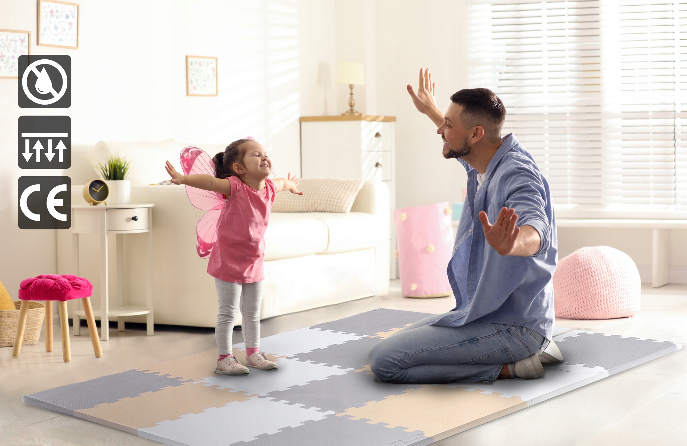 Завдяки товстій піні EVA (1 см) ви можете бути впевнені, що килимок ефективно пом'якшить будь-яке падіння.