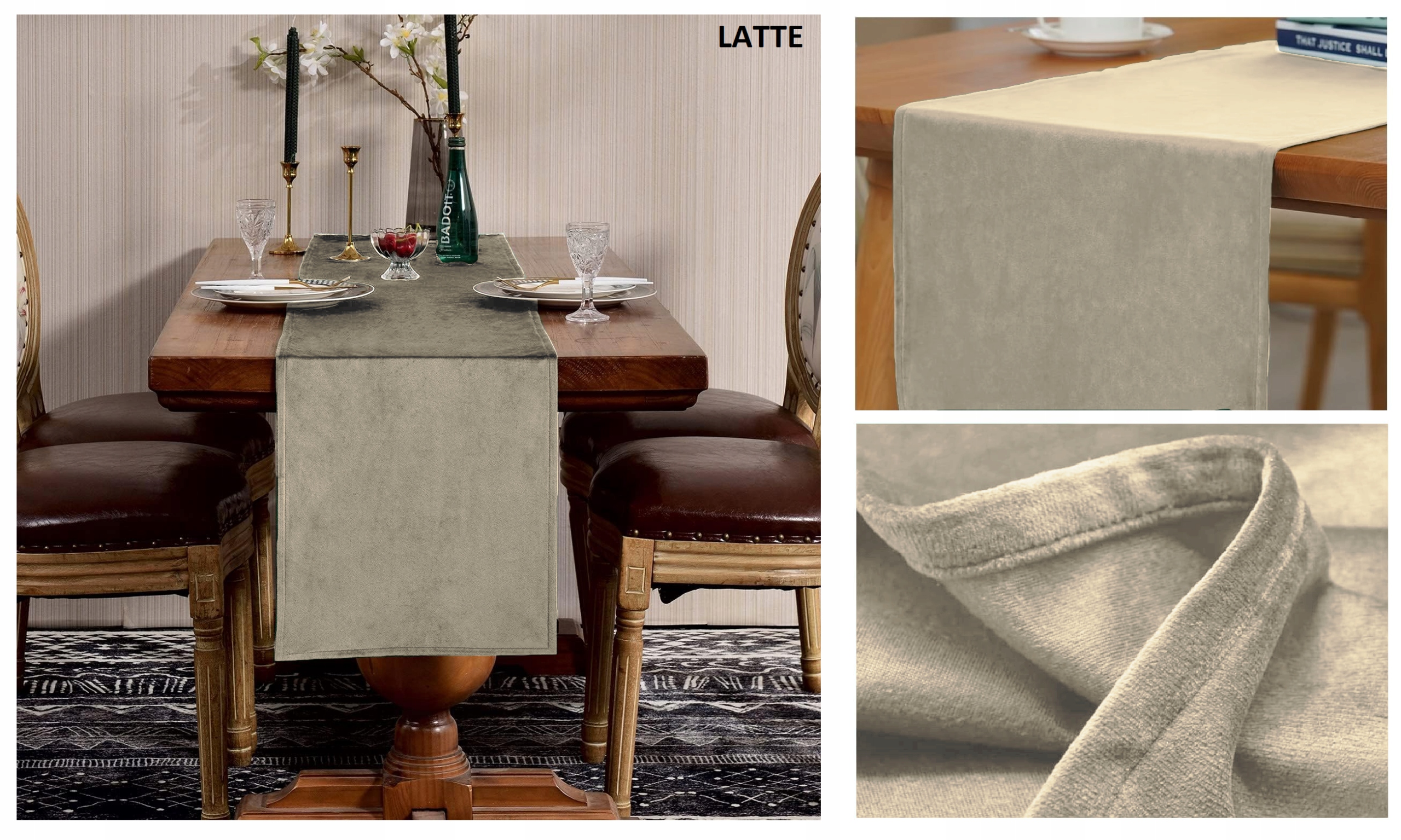 Колекцію доріжок VELVET різних кольорів можна чергувати, щоб прикрасити обідній стіл, туалетний столик, чайний столик, ящик, бар, ліжко та інші місця. протектори можуть зробити ваше життя динамічним, багатим на зміни. За допомогою доріжок ви можете прикрасити весілля, дні народження, випускні вечори та інші важливі події, щоб створити благородну та розкішну атмосферу.