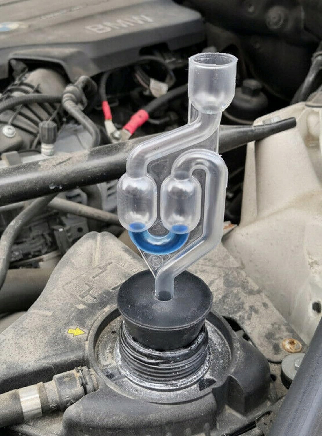 - Під час проведення тесту на резервуарі радіатора обов'язково проявляти додаткову обережність, коли відкрутить пробку на теплий двигун і під час тесту - ризик спалювання!