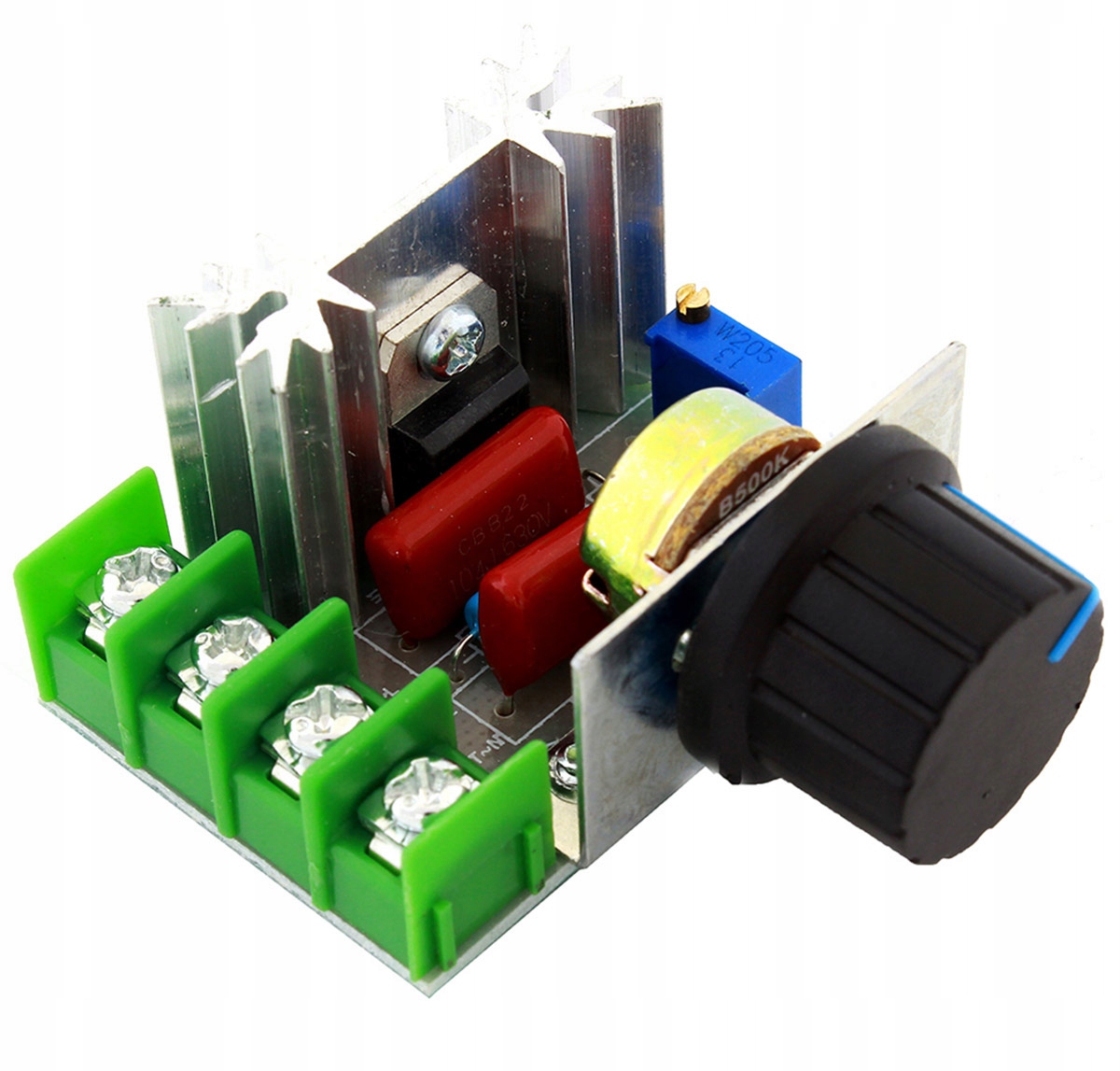 Регулятор швидкості, потужності (до 2000 Вт) і напруги (до 230 В змінного струму) однофазного двигуна. Оснащений потенціометром (з вбудованим регулятором) і пасивним радіатором. Універсальна система, яка може знайти багато застосувань в залежності від вашої творчості! Плата має надійно виготовлені та товщі шляхи, що гарантує тривалу та безвідмовну роботу.