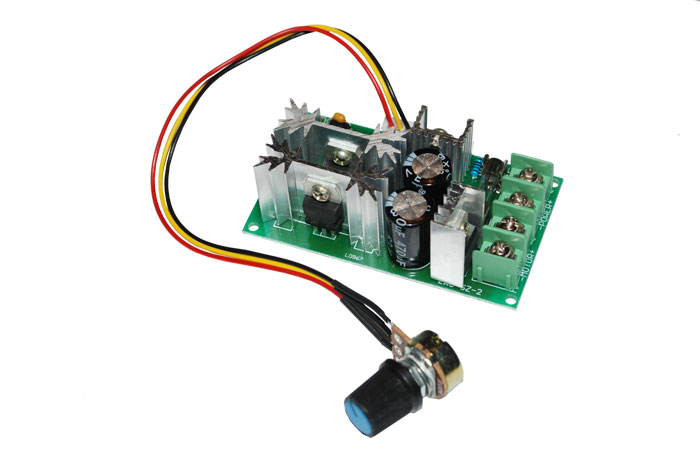 Повний і готовий до використання модуль ШІМ-регулятора швидкості для двигунів постійного струму з напругою від 10 до 60 В і струмом 0-20 А.