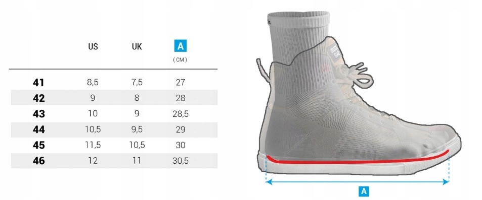 ** Динамічна стабілізація: Еластична стрічка в середній частині стопи запобігає ковзанню носка по нозі.